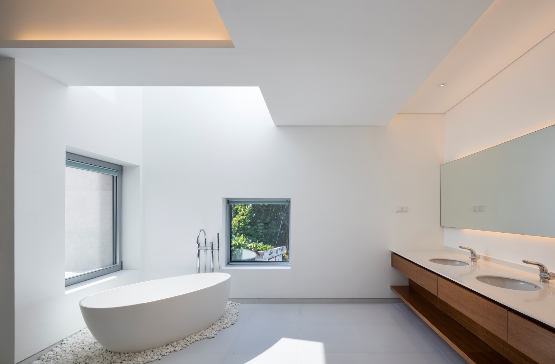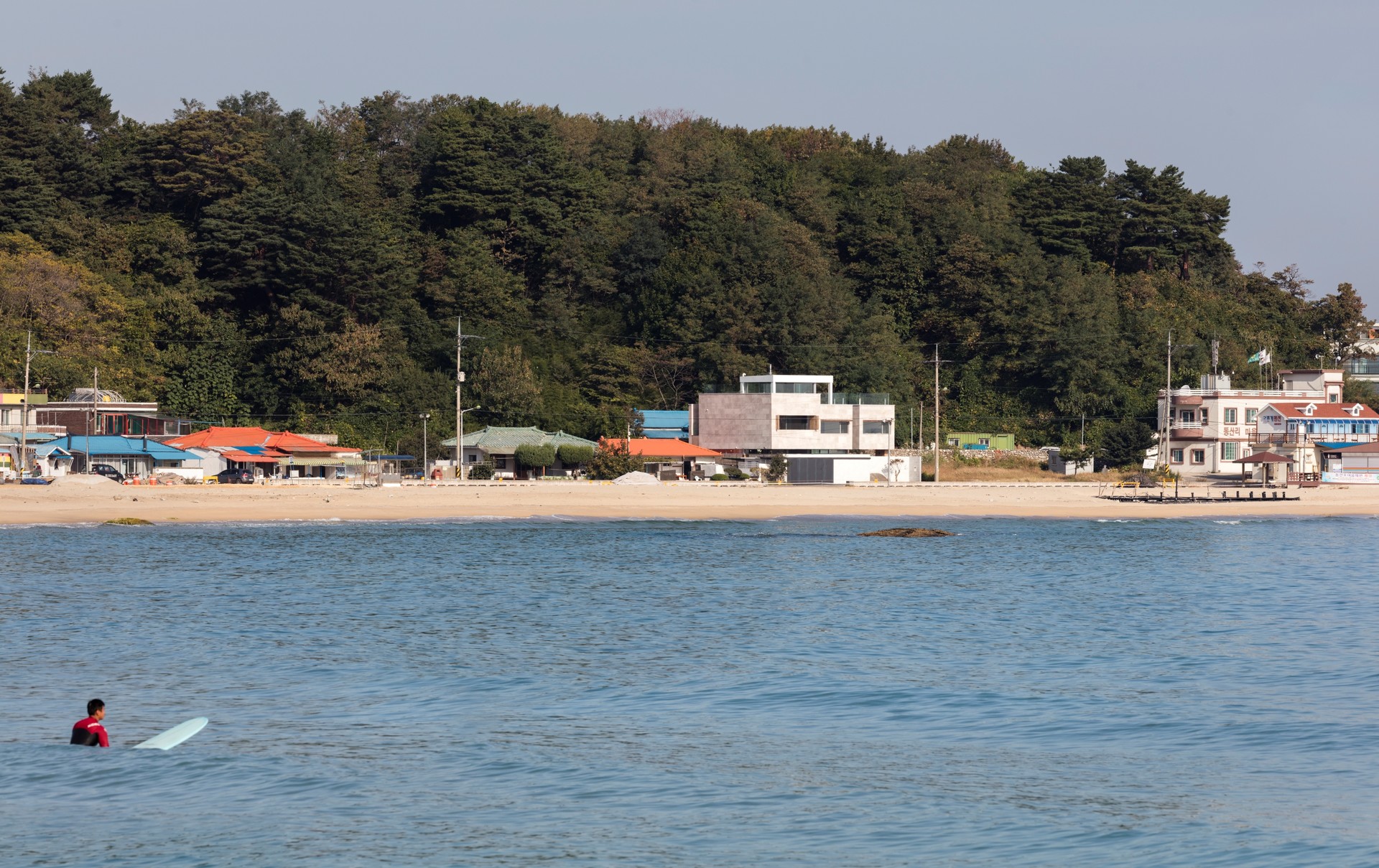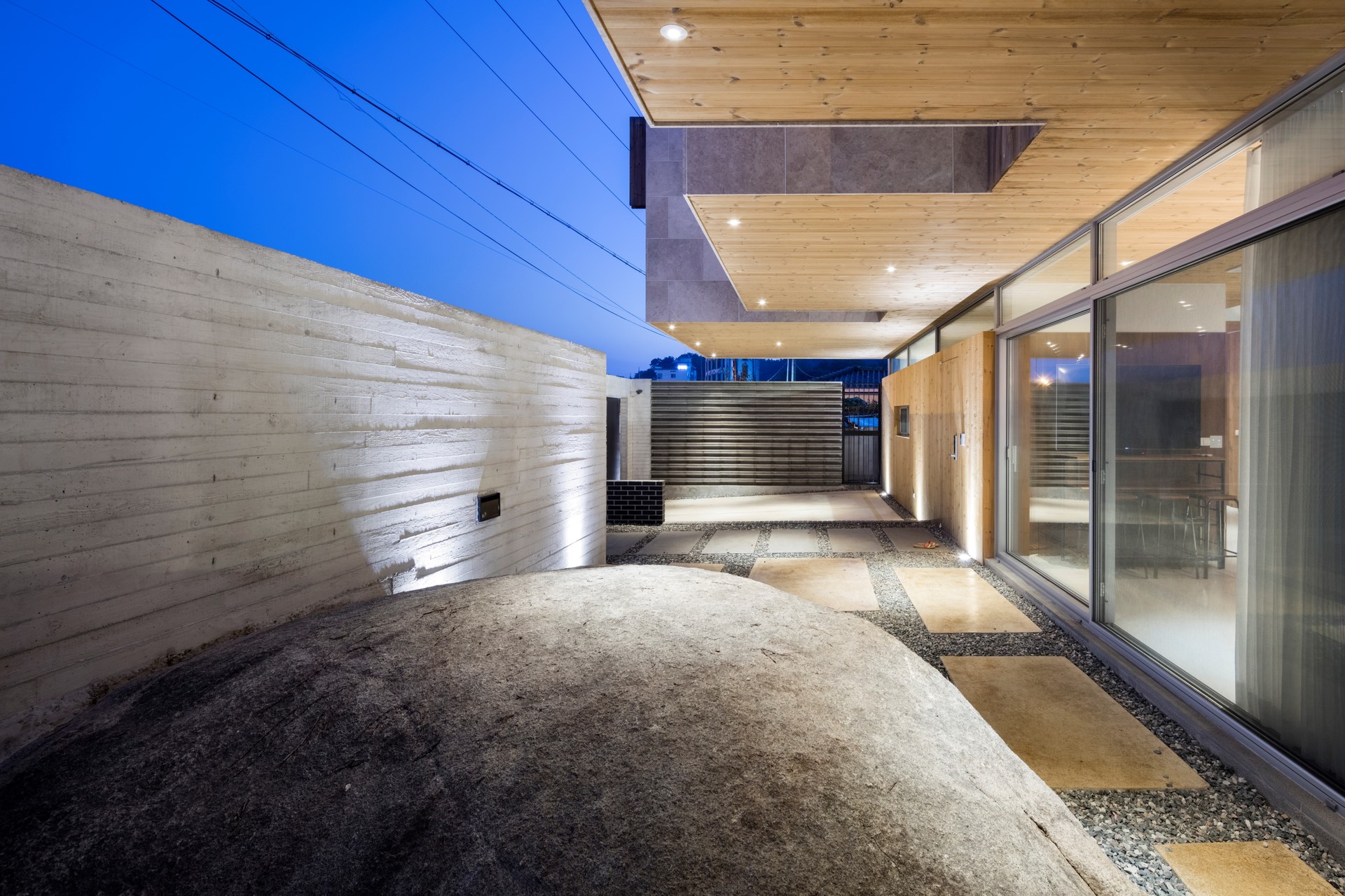 강원도 양양군 현남면의 동산포해수욕장은 파고가 높아 서퍼들의 파라다이스라 불리는 곳이다. 서핑이 취미인 젊은 여배우인 의뢰인은 그런 바닷가 바로 앞에 자신만의 파티하우스를 원했다. 어촌마을인 동네는 대부분 집들이 담장 없이 열려있는데, 여자 연예인인 만큼 사생활 보호 차원에서 담장은 있으되 마당이나 바다 쪽으로는 트인 시선을 만들었다. 그러나 건축주는 자신의 집이 마을에서 과하게 두드러지는 것을 원하지 않았기 때문에 성벽처럼 보이지 않도록 담장 안쪽의 1층 외벽은 전체를 창으로 계획하여 마치 실내외가 한 공간인 듯하고, 주인방과 게스트룸 두 개가 있는 2층은 각각의 방들이 바다를 조망하며 담장 너머로 떠 있는 형상을 하고 있다. 기존 대지에는 커다란 바위들이 땅에서 솟아 있었는데, 몇 개를 제외하고는 다 살리면서 집의 자리를 잡았다. 그중 정면 담장 쪽에 있는 바위는 마치 바다에서 막 수면위로 올라오면서 집으로 들어가려는 고래와 같아서 집의 이름을 ‘고래바위집’이라 명명하였다. 정원 뒤에 위치한 가장 큰 바위는 자쿠지로 계획하여, 물이 바위의 위에서부터 흘러 돌로 마감된 욕조로 흐르게끔 디자인했다. 건축주는 겨울에 서핑한 후, 바로 바위 자쿠지 욕조에서 그녀의 몸을 녹일 수 있다. 거실은 남쪽의 바닷가를 바라보는 대신에, 북측에 위치한 바위 자쿠지 옆에 배치했다. 거실 상부의 두 개층을 오픈해 계단실을 배치하여 천창으로부터 거실까지 햇빛이 들도록 계획했다. 옥상에는 파이어 플레이스와 데크를 두어 바비큐 파티를 하거나 명상, 선탠을 할 수 있게 하였다.